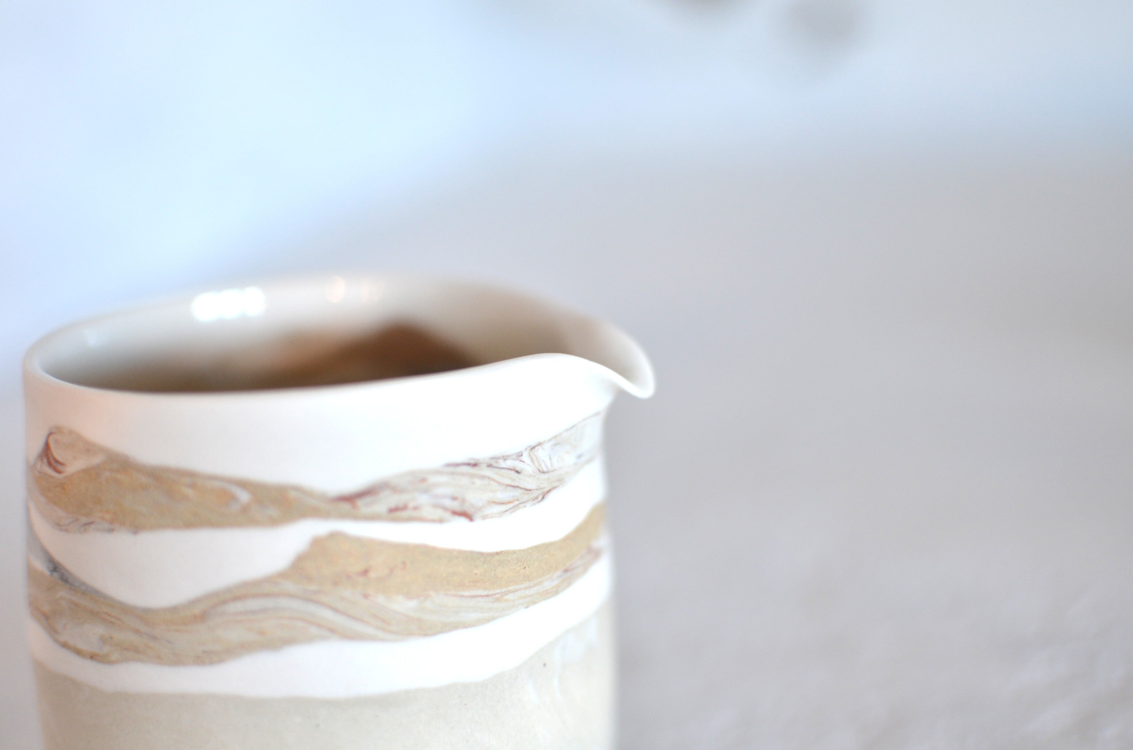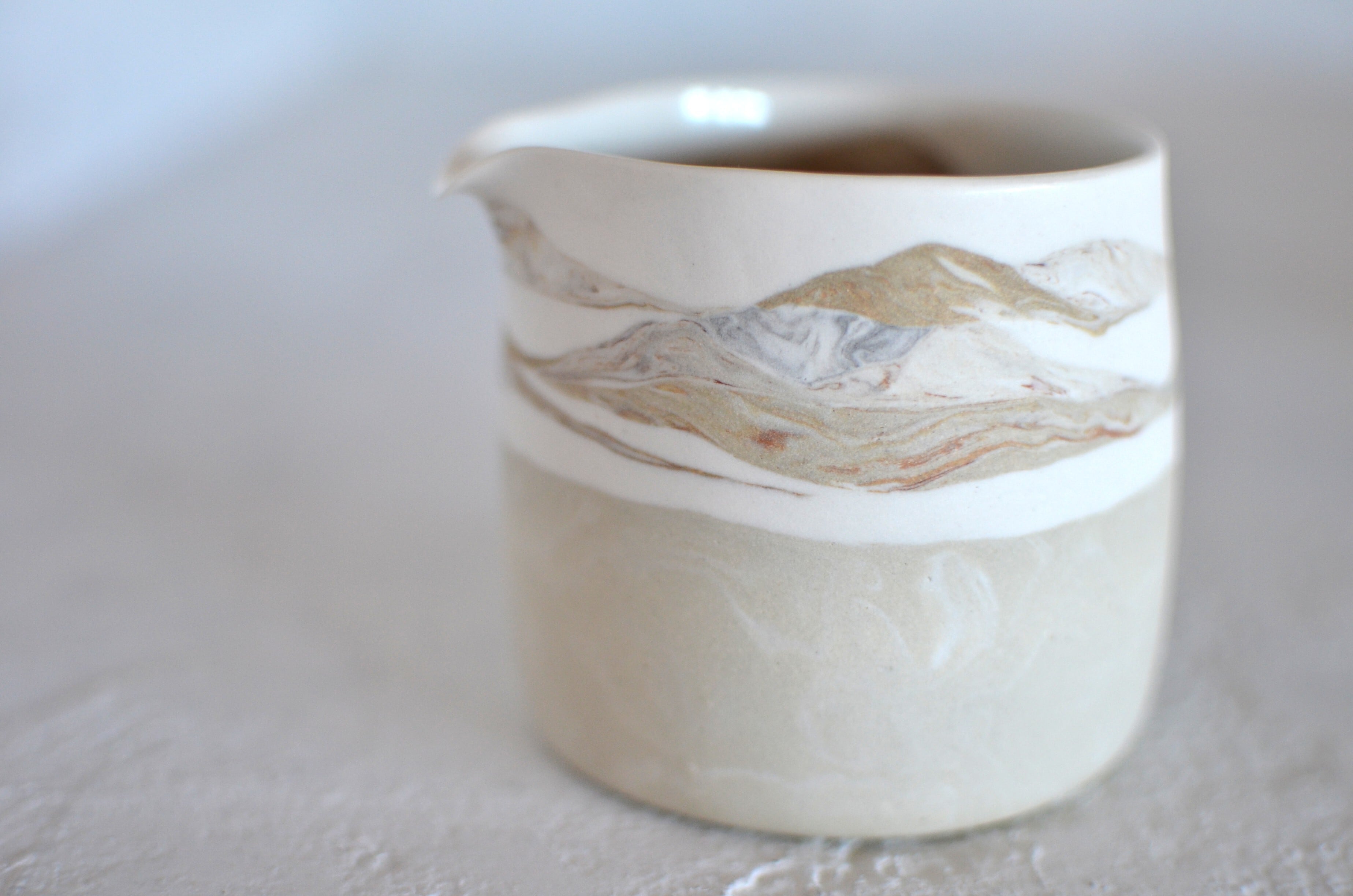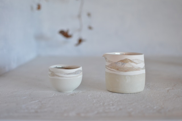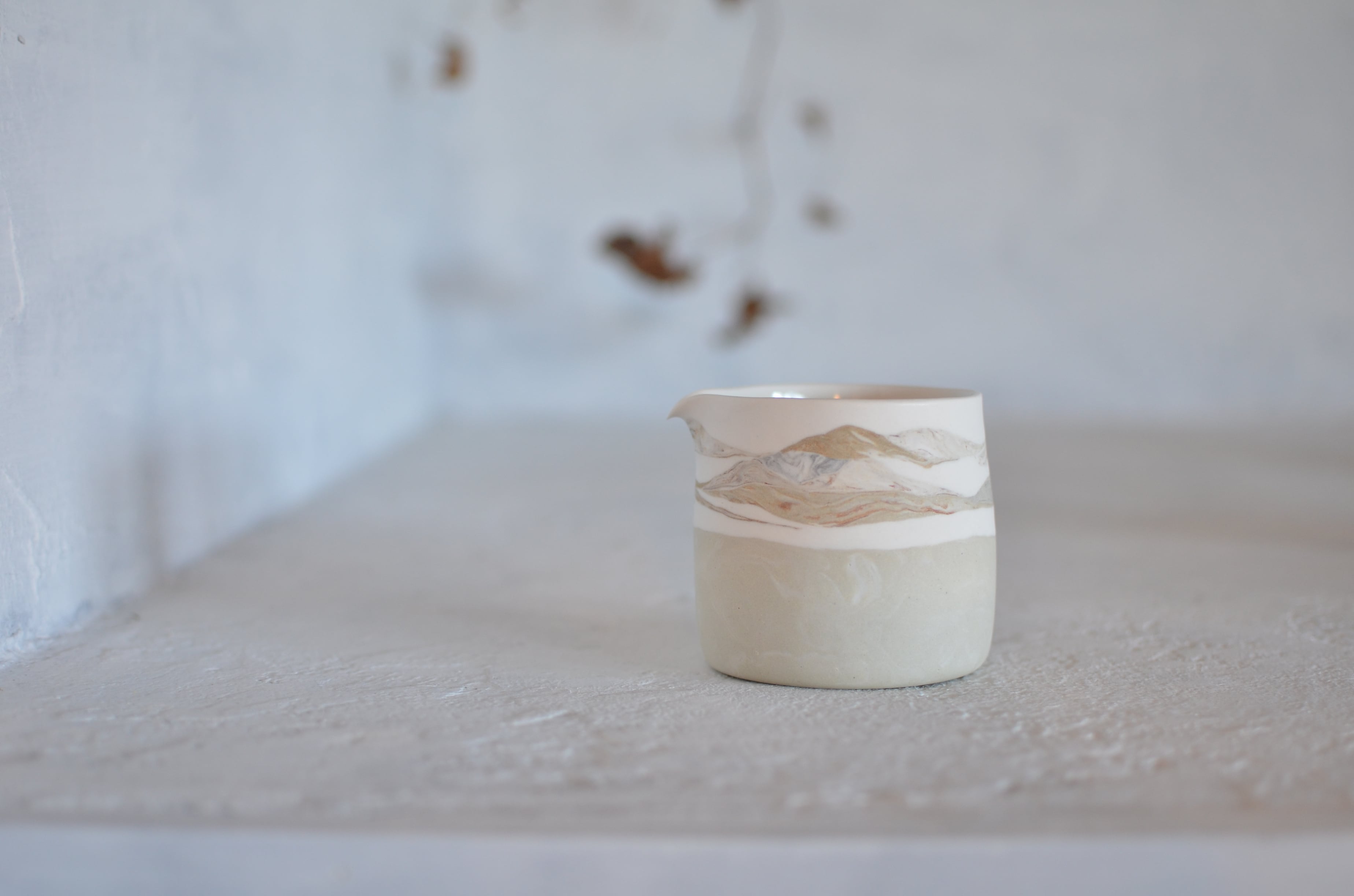 手捻りで自然の色の陶土を少しづつ積み重ね山景を表現。