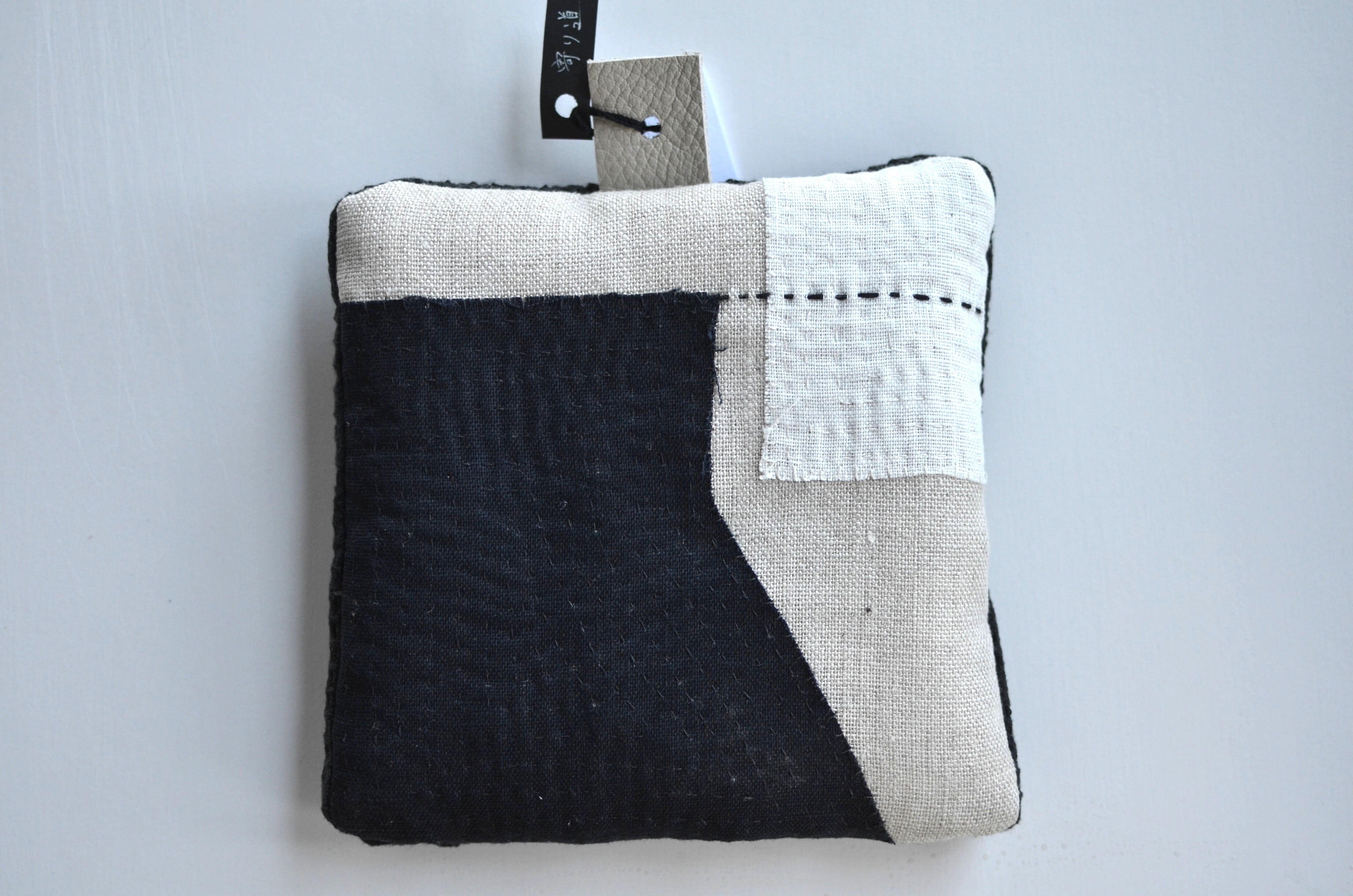 リネン生地を組み合わせた挿絵のような雰囲気のポットマットです。