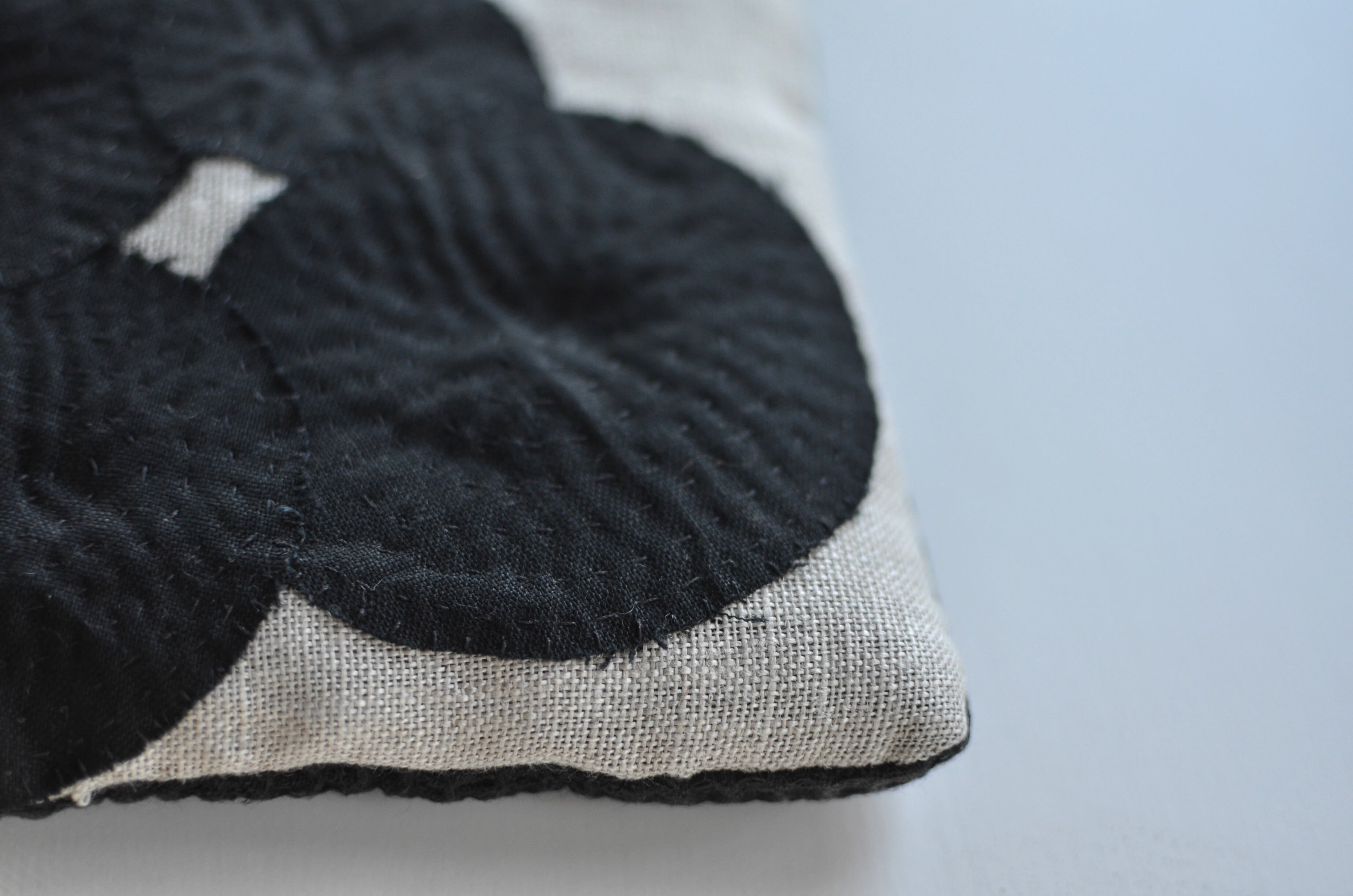 リネン生地を組み合わせた挿絵のような雰囲気のポットマットです。